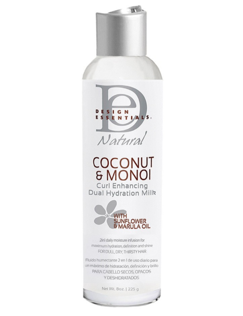 Le soin sans rinçage hydratant COCONUT & MONOÏ de la marque Design Essentials à utiliser sur cheveux mouillés après le shampoing et avant les soins coiffants. Il hydrate et facilite le démêlage des cheveux les plus secs et épais. Les boucles sont bien définies sans frisottis ni effet moussant.