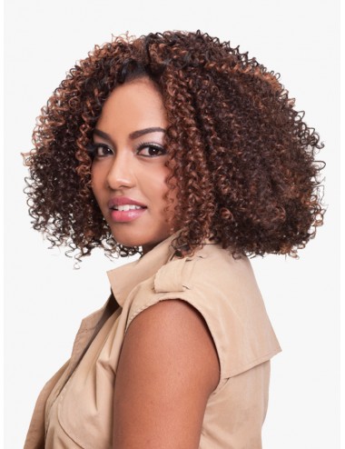 Changez de style… en 1 minute Chrono ! Les boucles serrées donnent un volume irrésistible à votre coiffure. Pour bien mettre en place votre perruque demi-tête, tracez une raie le long de la ligne d’implantation des cheveux et dégagez vers l’avant quelques mèches. Posez votre perruque. Ramenez les mèches de vos cheveux, entortillez-les pour les boucler et mélangez-les à celle de la perruque pour un rendu parfaitement naturel.
